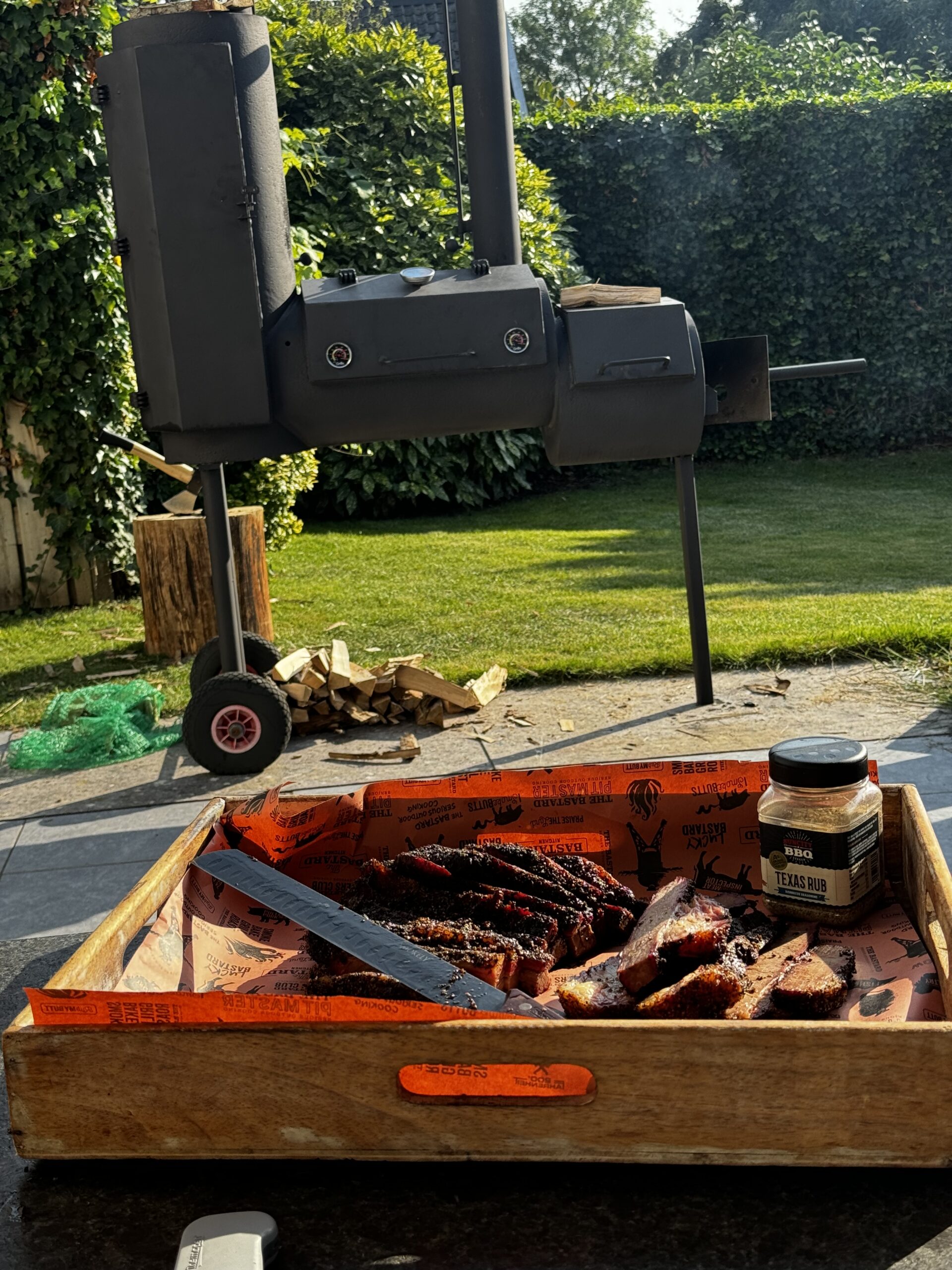 Mijn naam is Misha Kaljouw, ik ben 22 jaar en heb al jarenlang een passie voor het langzaam smoken van vlees. Wat ooit begon als een hobby in de achtertuin, is uitgegroeid tot een volwaardige BBQ-catering die draait om kwaliteit, traditie en smaak.