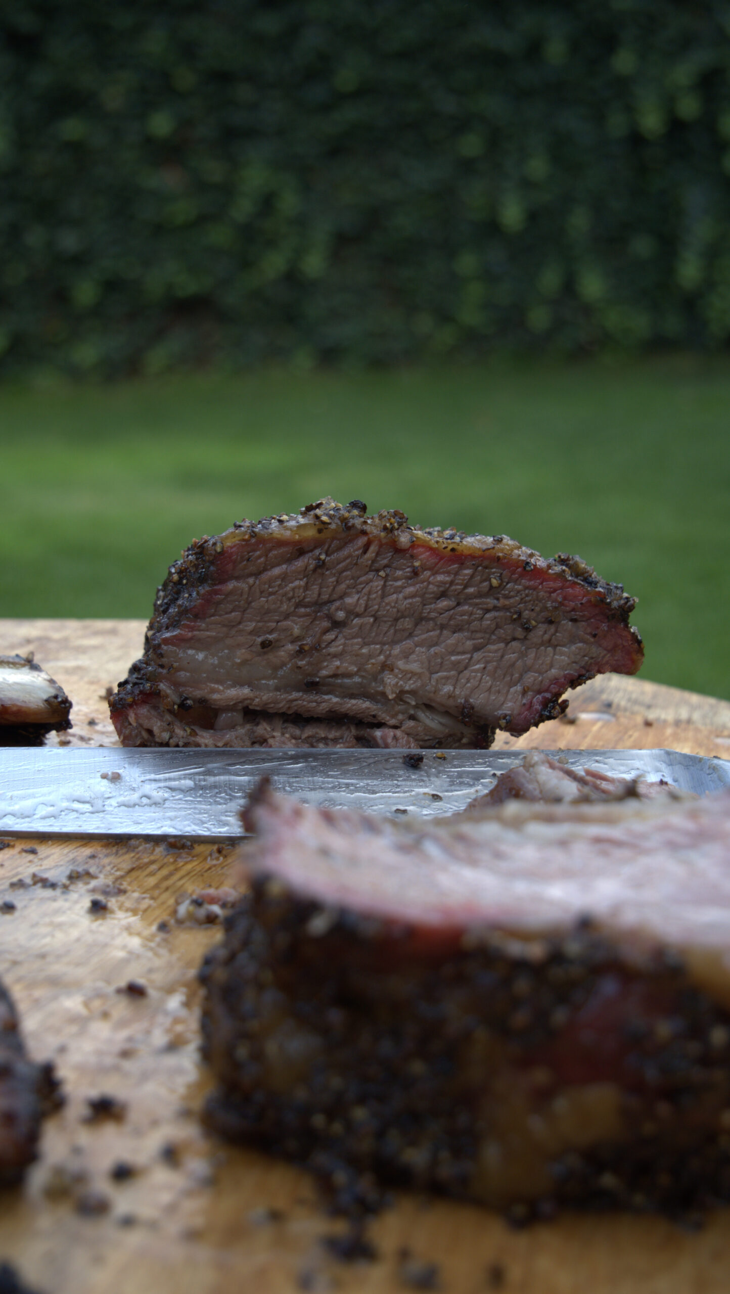 Wij werken met een offset smoker – hét traditionele BBQ-instrument van Texas. In deze smoker brandt hout in een aparte vuurkamer. De rook en warmte trekken langzaam door de rookkamer waar het vlees ligt, waardoor het vlees gelijkmatig gaart en zich vult met de pure smaak van het hout. Dit geeft niet alleen die kenmerkende rookring (een roze randje in het vlees), maar ook een gelaagdheid in smaak die je met geen enkele andere kooktechniek kunt evenaren. Wij gebruiken hierbij eikenhout voor de klassieke Texas smaak.